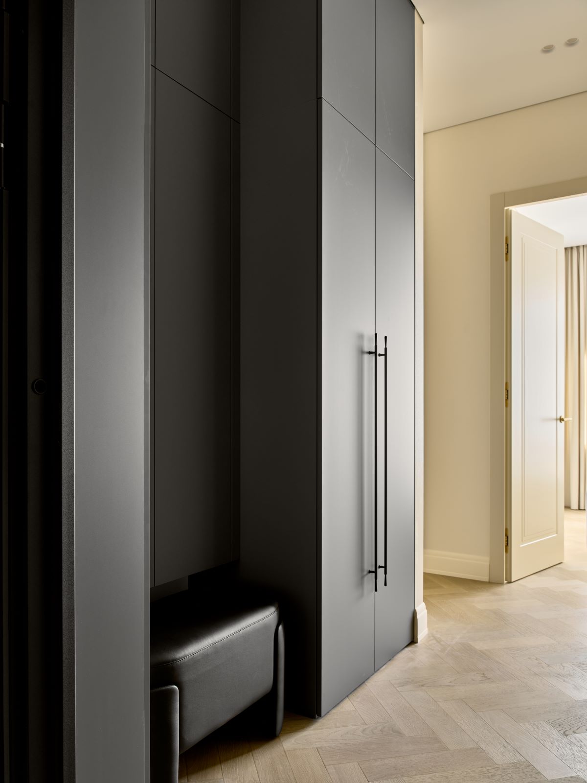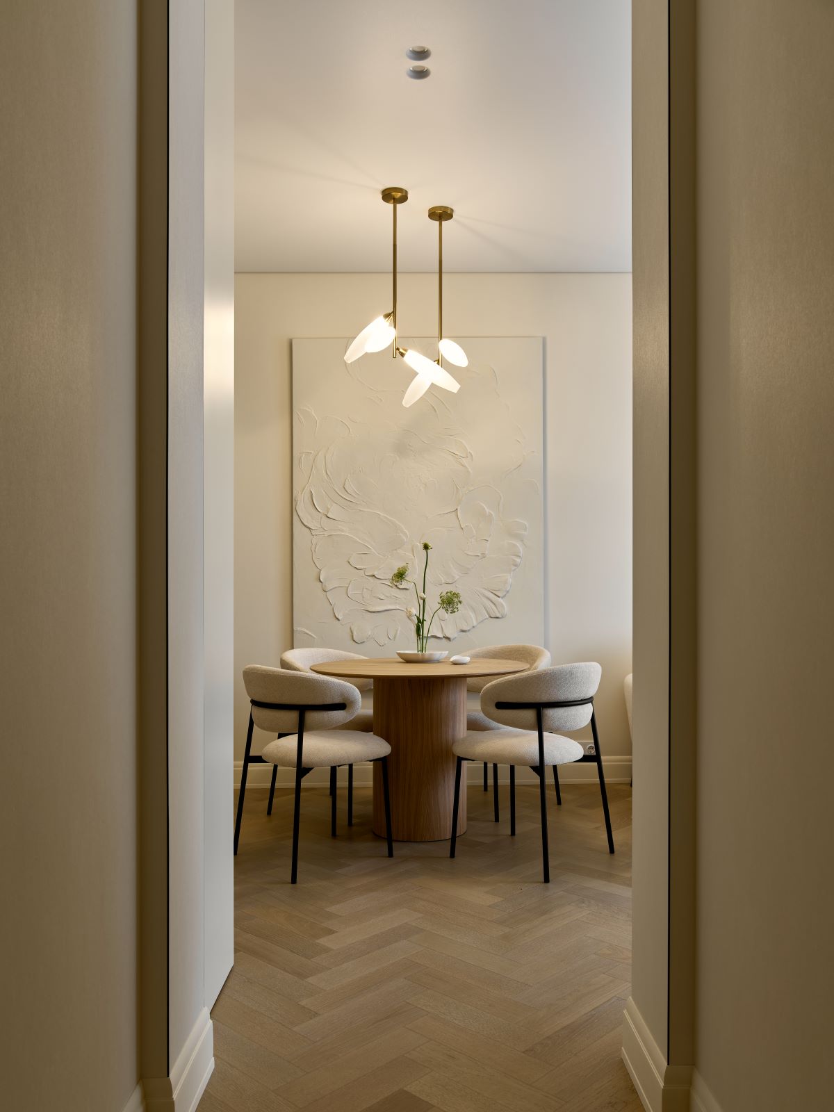 Эта квартира — для пары, которая сейчас живет и работает на Севере, а в город они приезжают в отпуск. Мы сделали планировку и интерьер так, чтобы им было удобно каждый день. Простая планировка, спокойные материалы, теплые оттенки, никаких сложных перепланировок — зато максимум комфорта. Здесь всё на своём месте, ничего лишнего, и в этом её настоящая ценность. Простота — это не скучно, это про то, что дом служит вам.